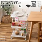 フォールディングラック 3段 折りたたみ キャスター付き おしゃれ メッシュ棚 高さ2段調節 スチール製