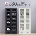 書棚 本棚 ハイタイプ 扉付き 収納 国産 大容量 80幅 ブックシェルフ 引出付き 扉収納 幅80cm 日本製 ガラス扉 開き扉 黒 ブラック 白 ホワイト