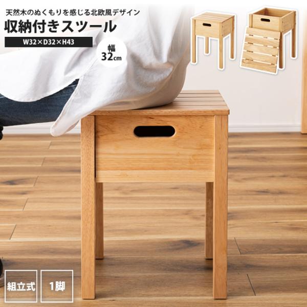 スツール 収納付き おしゃれ 天然木 シンプル 背なし 腰掛け 作業 椅子 イス いす HOW-004NA 収納付きスツール