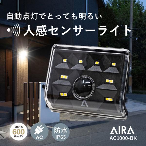 【品番】AC-1000BK【商品名】Aira LEDセンサーライト AC【電源】AC100V (50/60Hz) コンセント式 (電気工事不要)【消費電力】約6W (点灯時)【光源】白色LED【明るさ (全光束)】600lm (最大)【センサー...