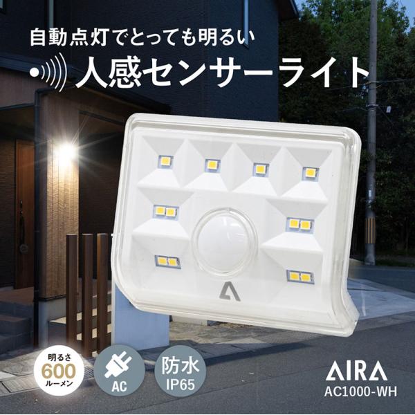 【品番】AC-1000WH【商品名】Aira LEDセンサーライト AC【電源】AC100V (50/60Hz) コンセント式 (電気工事不要)【消費電力】約6W (点灯時)【光源】白色LED【明るさ (全光束)】600lm (最大)【センサー...