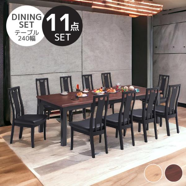 ダイニングテーブルセット 10人掛け 幅240 テーブル 10人用 11点セット ダイニングテーブル チェア10脚 オーク 突板 ラバーウッド無垢 240cm