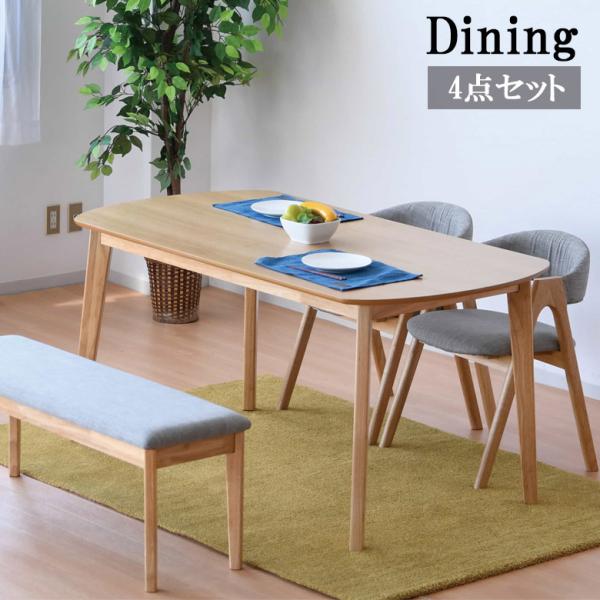 ダイニングテーブルセット 4点セット 幅150 ベンチセット 4人掛け 肘掛け無し 肘無し ラバーウッド オーク突板 ファブリック