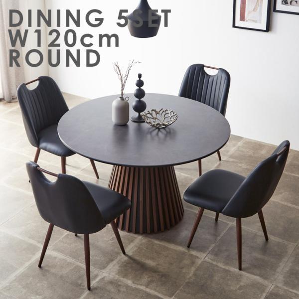 ダイニングテーブルセット 5点セット 4人掛け セラミック テーブル おしゃれ モダン 円形テーブル 120cm 丸テーブル ラウンドテーブル 円卓 円形 セット
