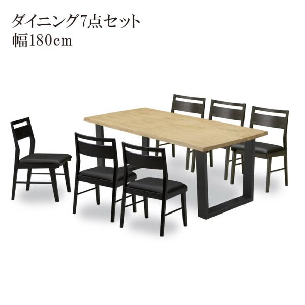 ダイニングテーブルセット 幅180 ダイニングセット 7点セット 6人掛け テーブル ラバーウッド アッシュ突板 PVC 合成皮革 肘掛け無し 肘無し