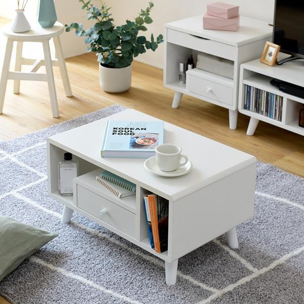 リビングテーブル 収納 幅60 奥行42.5 高さ35 Pico おしゃれ 引き出し付き かわいい 韓国風 コンパクト コーヒーテーブル 木製 収納付き リモコン収納