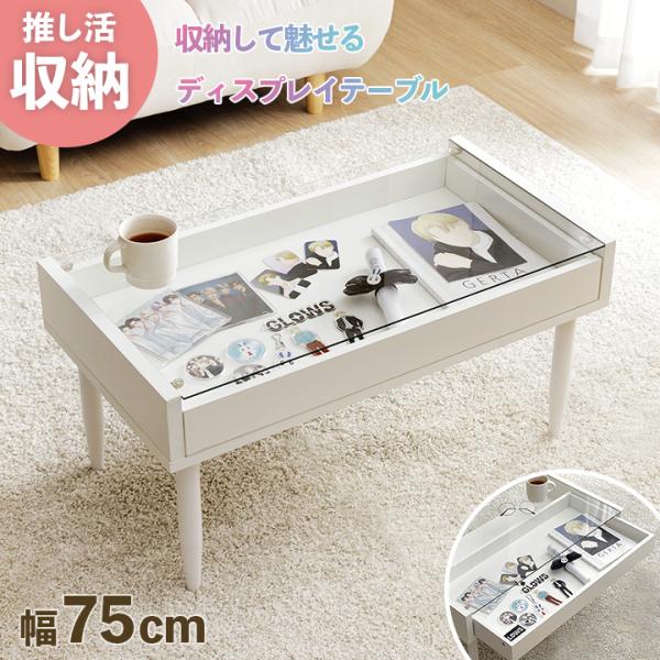 ローテーブル ガラステーブル 白 コンパクト センターテーブル 引き出し ガラス 推し活 収納 オシスキ ミセラ おしゃれ グッズ 雑誌