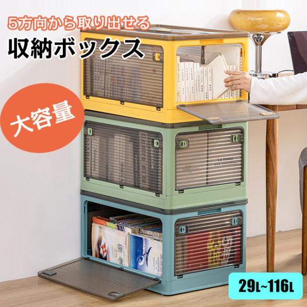 半透明 5面開き 収納ボックス 折りたたみ収納ボックス 超大容量 おしゃれ キャスター付き 組立簡単 積み重ねコンテナ 中身が見える 収納コンテナ 押し入れ