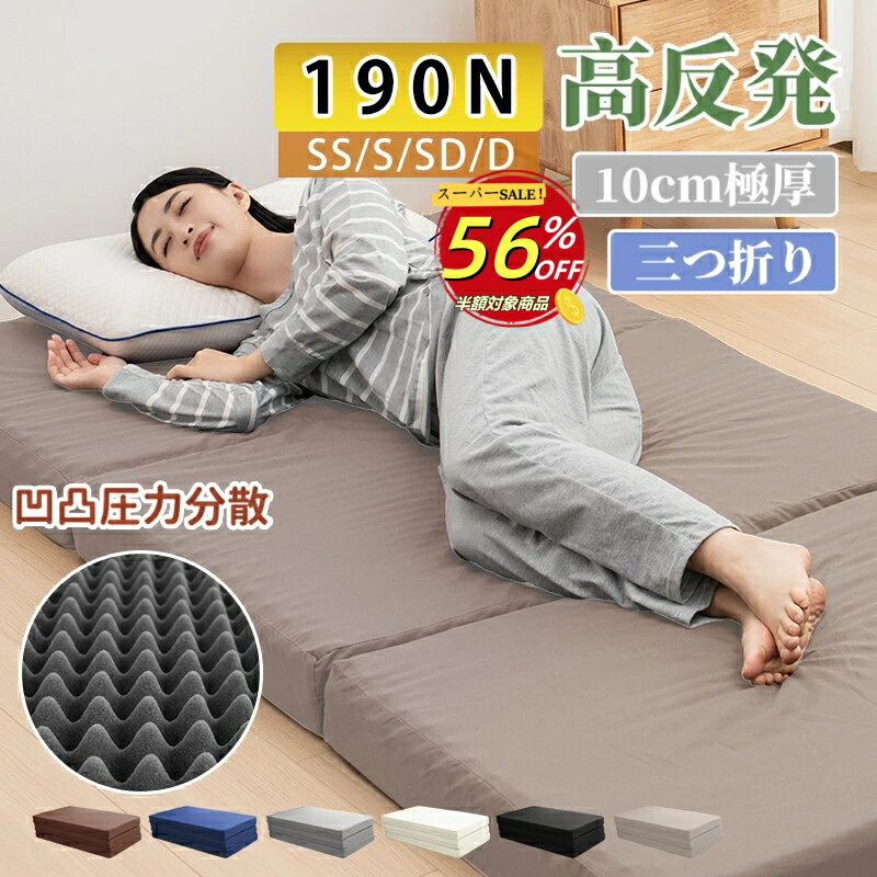 【1名限定50%OFFクーポン★12/4 20:00〜】 高反発 マットレス シングル セミダブル ダブル セミシングル セミシングルショート 10cm 三つ折り 3つ折り 厚さ10cm ウレタン 3Dメッシュ マイクロファイバー生地 高反発マットレス 190N 敷布団 敷き布団