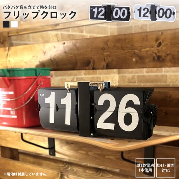 フリップクロック パタパタ アナログ 時計 おしゃれ レトロ 置き掛け両対応 CLK-118 BK/WH フリップクロック