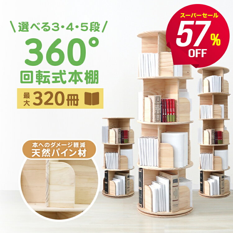 【スーパーセール57%OFF】回転式本棚 絵本棚 回転 子供 天然木 3段/4段/5段 大容量 スリム A4対応 絵本ラック 棚 収納 本棚 回転 漫画棚 回転本棚 回転ラック 収納ラック ブックシェルフ CD DVD コミック収納 天板に物が置ける 組立簡単 コミックラック ss