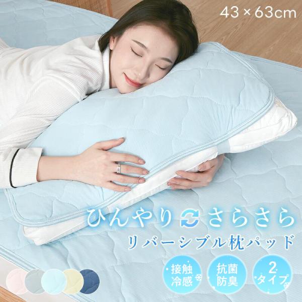 枕パッド 冷感 43×63cm リバーシブル タオル地 ピーチスキン 夏 枕カバー 枕パット ピローパッド 吸水速乾 接触冷感 クール ひんやり オールシーズン