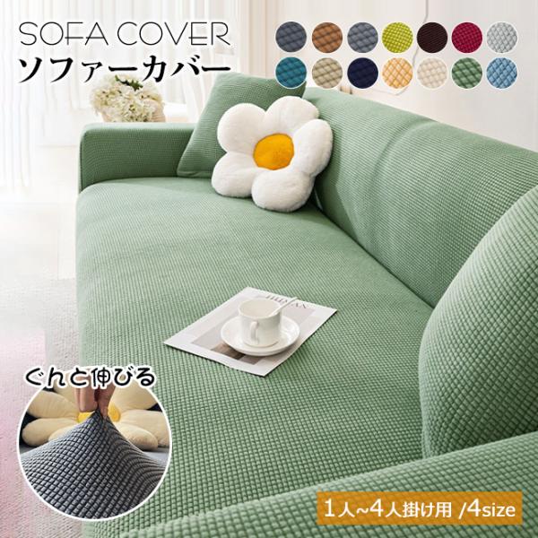 高品質 14カラー選べる ソファーカバー 一体型 3人掛け 2人掛け ストレッチ 肘付き 1人掛け 4人掛け 洗える 犬 猫対策 ワッフル フィット 伸びる