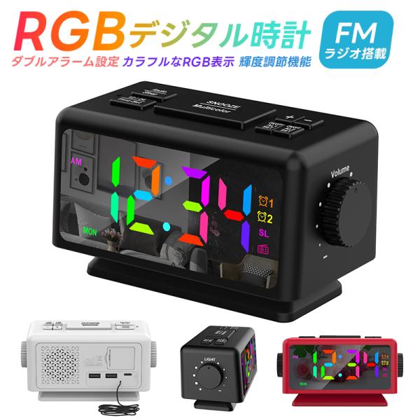 【50%OFF】デュアル目覚まし時計 デジタル時計 RGB時計 置き時計 アラーム 目覚まし時計 輝度調整 2つのアラーム LED表示 スヌーズ機能 大画面 操作音無し 寝室