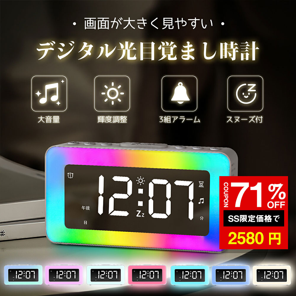 \SS激安/★71%OFF→2580円★「コード式」デジタル時計 置き時計 目覚まし時計 大音量 大画面 おしゃれ LED目覚まし時計 卓上時計 ミラー カラフル アラーム スヌーズ バックライト 静音 多機能 発光 大文字見やすい 明るさ調整 寝室 オフィス 受験生 インテリア