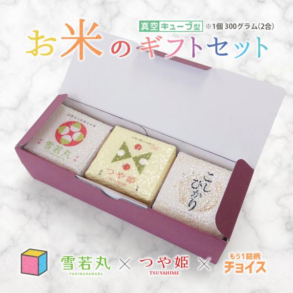お米のギフトセット 真空キューブ 3個入り (1個300g2合) つや姫/雪若丸/コシヒカリ/ひとめぼれ/はえぬき/ミルキークイーン/サキホコレ/ゆめぴりか/ななつぼし