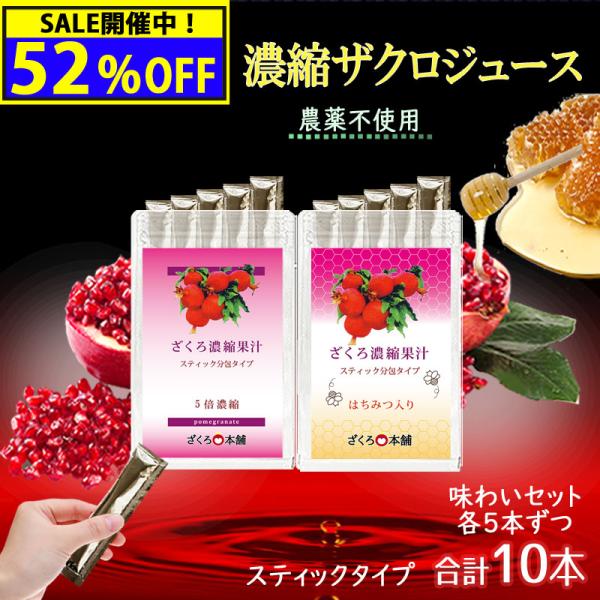 【52%OFF】ザクロジュース 味わいセット スティック 10本 5倍濃縮ざくろ果汁 蜂蜜入り濃縮ざくろジュース 各5本の計10本