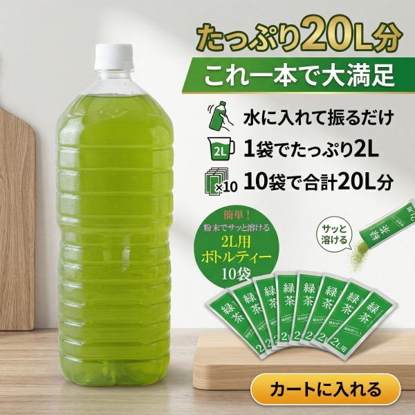 送料無料 訳あり 2L用ボトルティー(緑茶)20袋セット 水にサッと入れるだけの簡単で経済的 厳選原料使用 独自の製法でブレンドした高品質な粉末茶