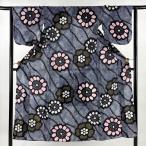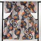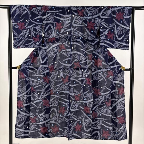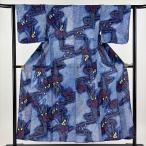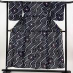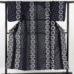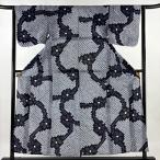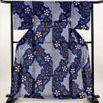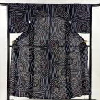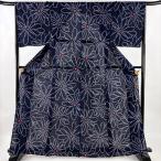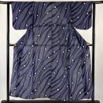 浴衣 身丈158.5cm 裄丈63cm S 幾何学模様 紺色 綿 名品 中古