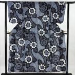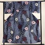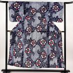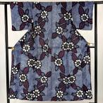 浴衣 身丈164cm 裄丈66cm M 絞り浴衣 花 紺色 綿 名品 中古