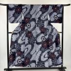 浴衣 身丈152.5cm 裄丈63.5cm S 絞り浴衣 流水 花 濃紺 綿 名品 中古