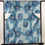 浴衣 身丈158cm 裄丈65cm M 絞り浴衣 花 幾何学模様 水色 綿 名品 中古