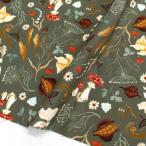 輸入生地 生地 グリーン地きのこ植物柄 STELLA ステラ TIMELESS USAプリント 最低単位30cm〜10cm単位の切売