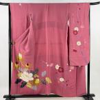 振袖 身丈155.5cm 裄丈65.5cm M 袷 牡丹 枝梅 金彩 ちりめん ピンク 正絹 名品 中古