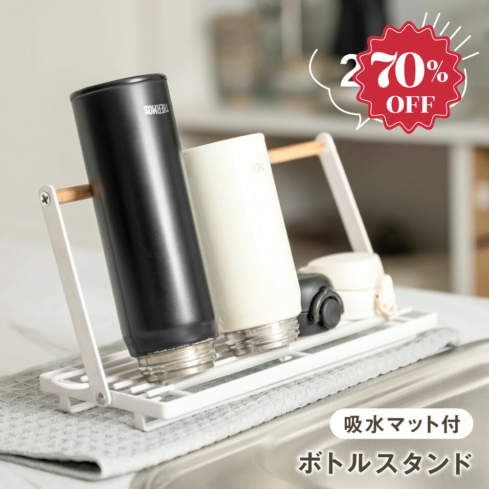 【80%OFFクーポン利用で996円】水切りラック 水筒スタンド 滑り止めバー 水切り 置き 立て 安定 収納 乾燥 ボトルスタンド 水切りかご 折りたたみ ステンレス 吸水マット マグボトル 哺乳瓶 まな板 鍋ふた ボトル キッチン収納 c-00040