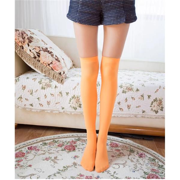 送料無料 みかん色 オレンジ シンプル ニーハイソックス ピッタリ素材 美脚 スリムレギンス ヨガ ジム ニーソ セクシー 母の日 桜 花粉 UVカット 冷感 春