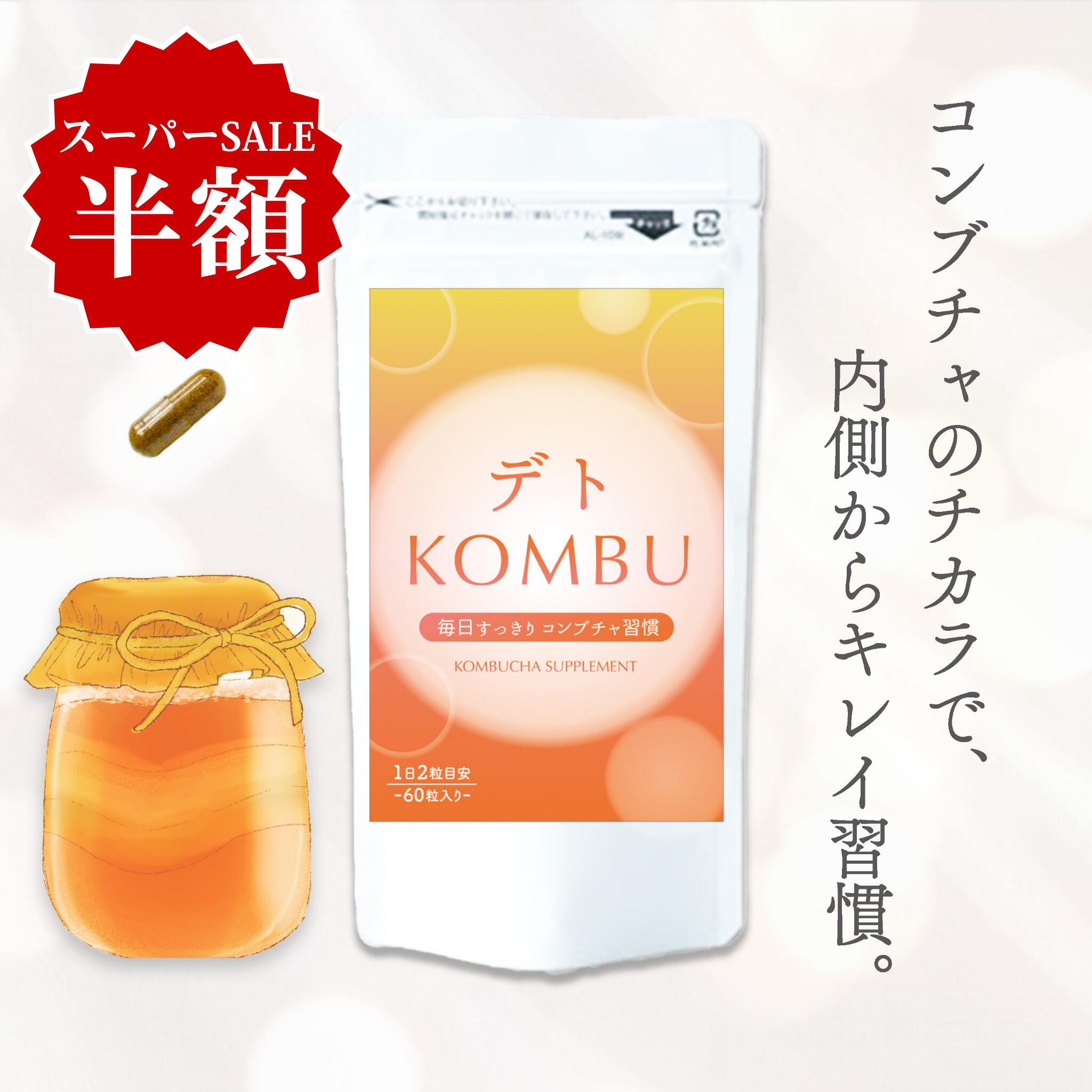 \楽天スーパーSALE 50%OFF★クーポン対象/毎日スッキリ習慣 ★デトKOMBU★ 1ヶ月分/60粒 コンブチャ サプリ サプリメント 美容 健康 酵素 酢酸菌 酵母菌 紅茶キノコ ハネセンナ モズク 発酵 バガス ポリフェノール フラボノイド