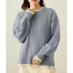 ニット セーター レディース 太め リブ サイドスリット 前後差丈 配色切替 クルーネック プルオーバー トップス