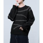 ニット セーター レディース ふんわり 軽い ゆったり 総柄 長袖 クルーネック プルオーバー トップス