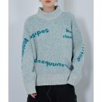 ニット セーター レディース ふんわり 軽い ゆったり ロゴ 総柄 プリント 長袖 ハイネック プルオーバー トップス