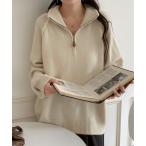 ニット セーター ハーフジップニットプルオーバー ふわもち素材 ビンテージ風ジップ スタンドカラー レディース