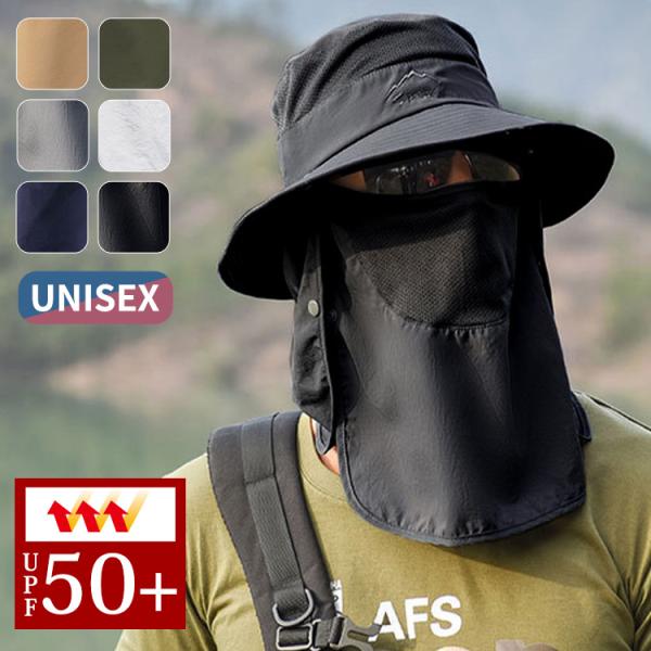 360度日除けハット レディース メンズ ユニセックス サファリハット ネック フェイス ガード UPF50+ 黒 春夏 秋
