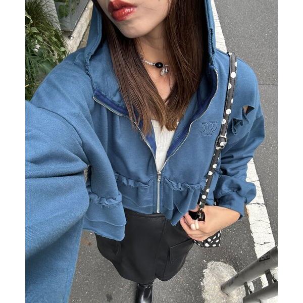 パーカー CPロゴフリルティアードダメージパーカー レディース