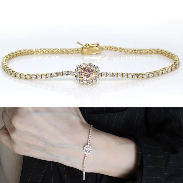 非加熱パパラチャサファイヤ(ノンヒート) 1.16カラット ダイヤモンド 2.58カラット K18YG イエローゴールド ブレスレット ダイヤの美しいライン 1点もの