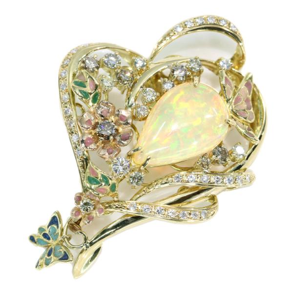 エチオピアオパール 5.88カラット ダイヤモンド 1.79ct K18YGペントップ兼ブローチ エナメル 蝶・バタフライデザイン 1点もの
