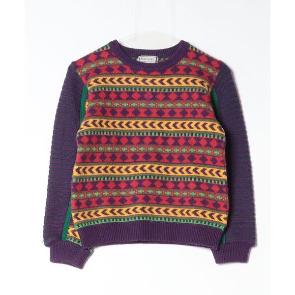 「Yves Saint Laurent」 ボーダー柄長袖ニット 140 パープル レディース