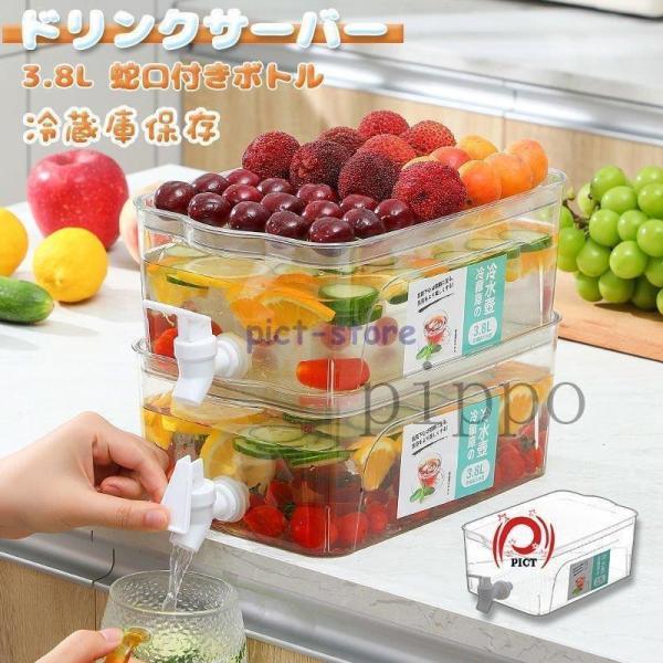 【特価】ドリンクサーバー 冷蔵庫 蛇口付き ボトル 冷水筒 ウォーターサーバー 3.8L PET材質 大容量 ディスペンサー 水ボトル 透明 酒を浸ける 容器