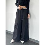 パンツ ベルト付ラップシフォンワイドパンツ レディース