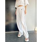 パンツ パイピングラインロゴ刺繍ワイドパンツ レディース