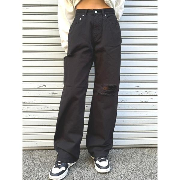 「EGOIST」 ダメージ加工デニムパンツ SS ブラック レディース
