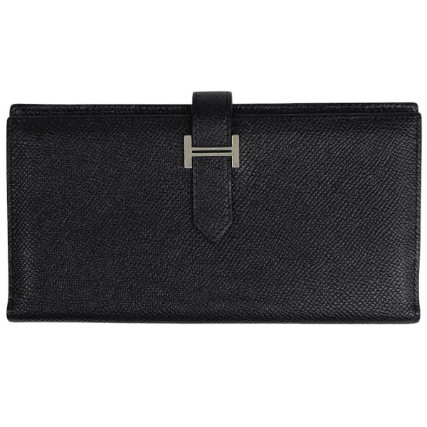エルメス HERMES ベアン スフレ Hロゴ 二つ折り 長財布 ヴォーエプソン ブラック T レディース 中古