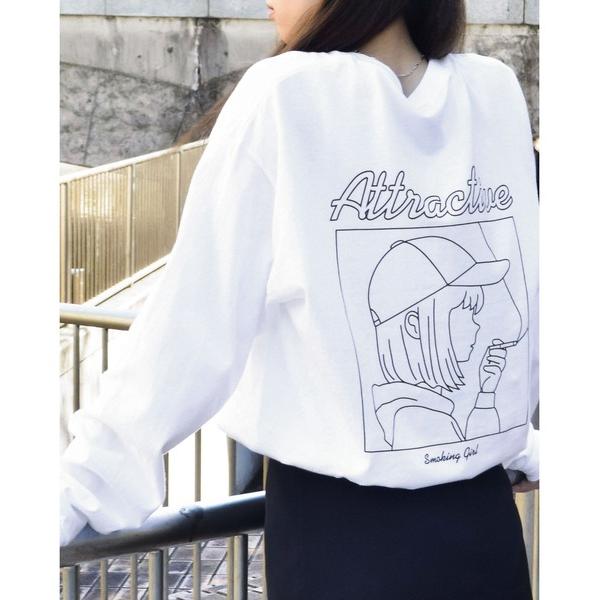 tシャツ 「MODISH GAZE」6.0オンス スモーキングガール 線画イラストロンT 長袖 メンズ レディース