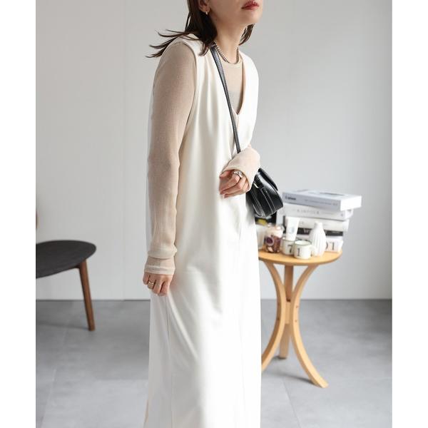 ジャンパースカート 「apretro」Vネックロングジャンパースカート/ ベスト ジレ 前後 3WAY