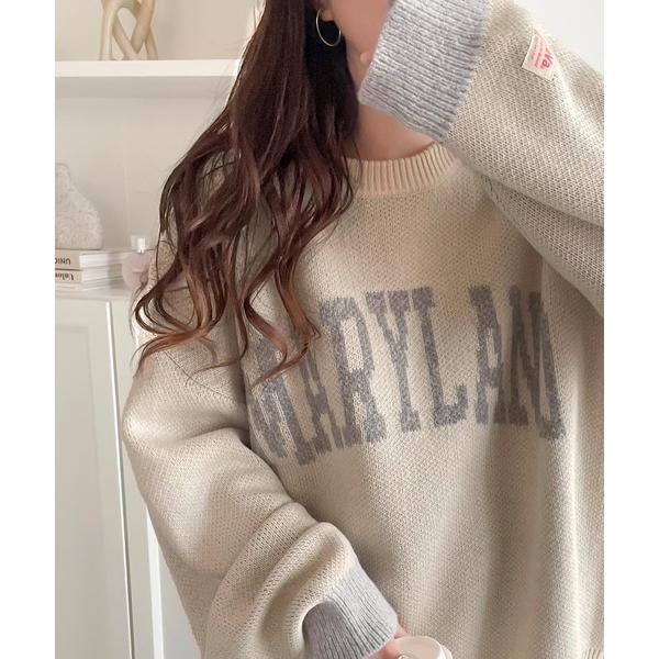 ニット セーター 「JaVa ジャバコラボ」大人カジュアルの定番。2wayMIXヤーンバイカラーロゴ オーバーサイズ ニットプルオーバー レディース
