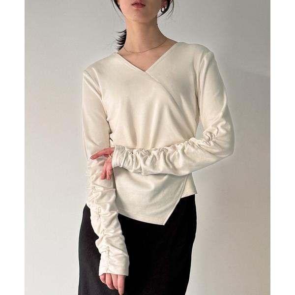 tシャツ 微起毛カシュクールドレープカットソー レディース