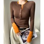tシャツ ソリッドカラー ヘンリーネック コンパクト 長袖 カットソー レディース